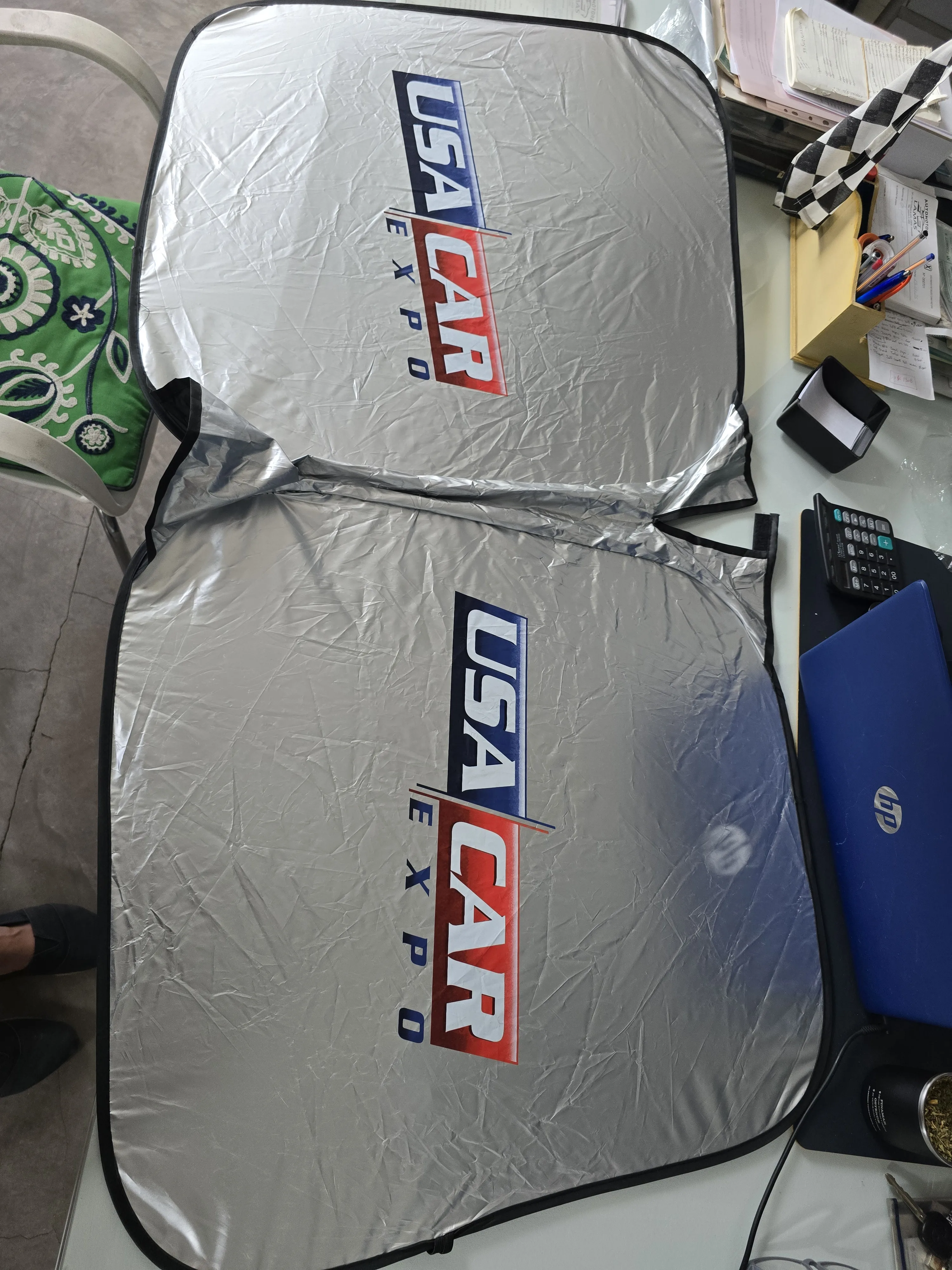 แผ่นบังแดดรถยนต์แบบพับได้พิมพ์ลายตามสั่ง แผ่นบังแดดรถยนต์ด้านหน้าแบบพิมพ์ลายตามสั่ง