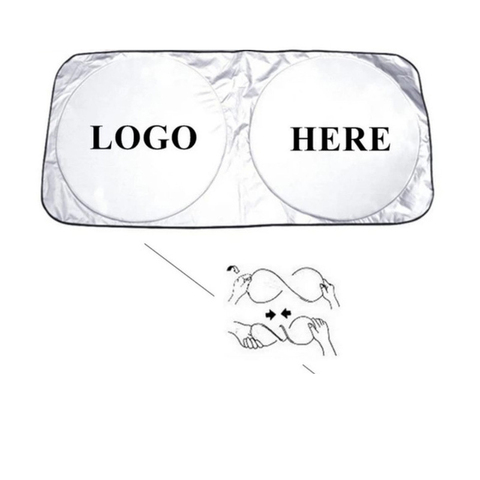 Ön şemsiyeleri UV koruma gümüş polyester çift daire araba güneşliği cam tasarımcısı özel araba güneşliği